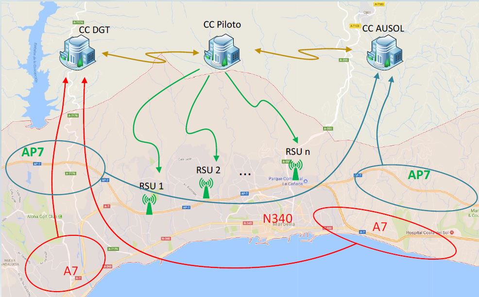 El número estimado de vehículos equipados es 45. En particular, ITS-G5 se utilizará en los 125 km del piloto Mediterráneo.